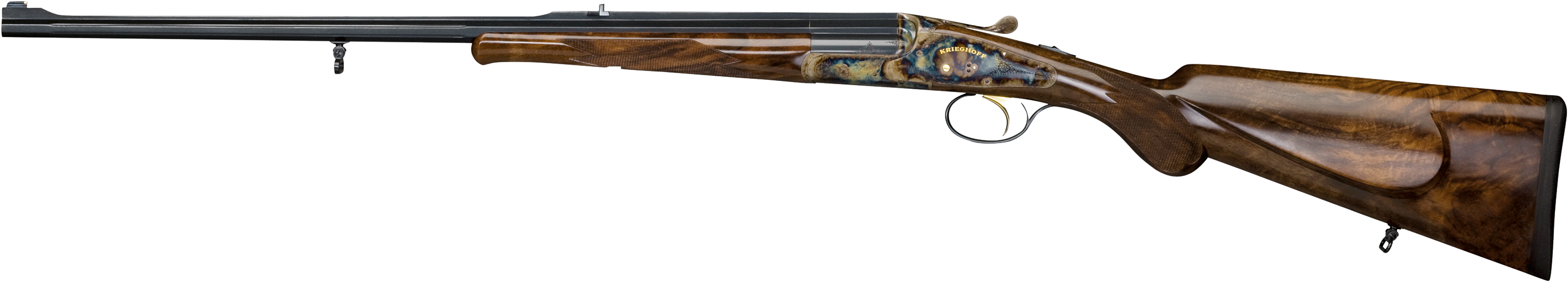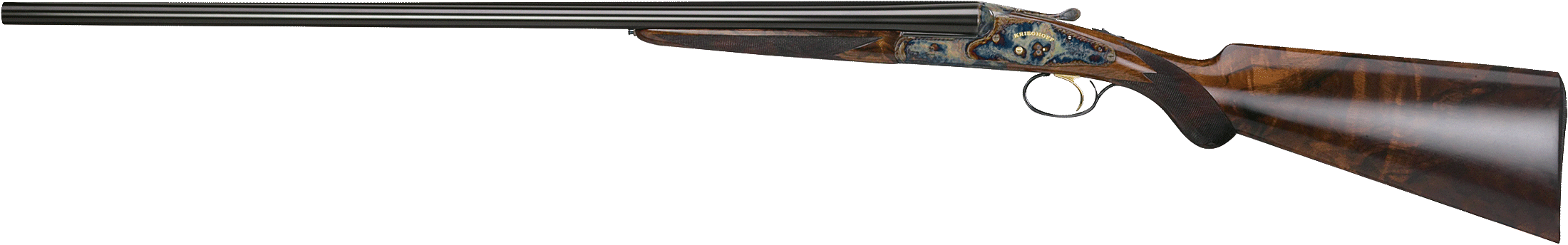 With their pure elegance, first-class craftsmanship and proven technology, these masterpieces of the art of gunmaking fall into the same category as the highly coveted “best” English or Italian guns. The genuine back action sidelocks and triggers are gold plated, while the color-case hardened receiver is engraved with English scrolls. The elegant round body action and the Holland & Holland style ejectors ensure responsiveness and easy handling.